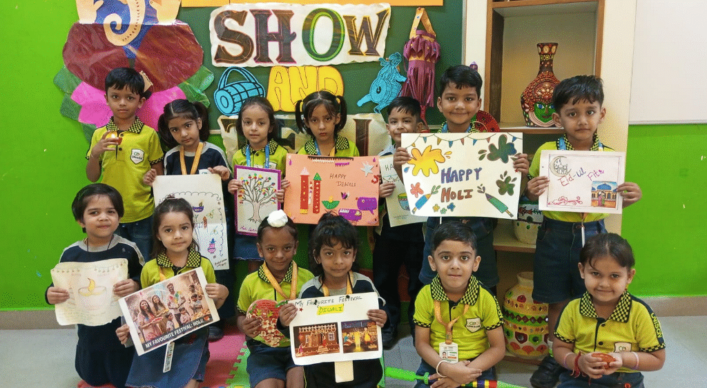 Our little stars from Nursery, LKG, and UKG shone bright in a lively Show and Tell competition. With confidence and creativity, they shared their thoughts on: Nursery: My Favourite Festival LKG: My Favourite Festivals UKG: My Favourite Ramayana Character It was truly