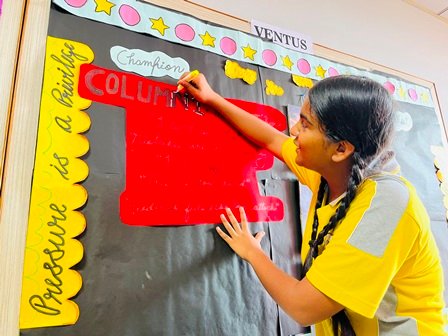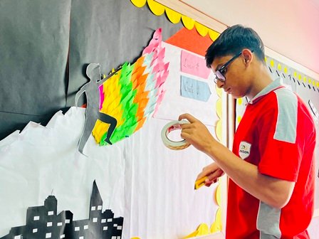 Each house brought forward unique themes, vibrant colours, and innovative ideas, turning simple boards into eye-catching visual stories. The activity not only highlighted artistic talent but also encouraged teamwork, healthy competition, and creative expression among students.