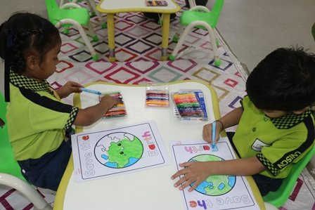 Our little learners joyfully filled their Earths with vibrant colours, turning creativity into a beautiful expression of love for nature. With every shade, they explored the importance of caring for our environment in a fun and engaging way.