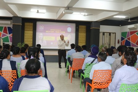 The programme was conducted in two segments. The ๐๐ข๐ซ๐ฌ๐ญ ๐ฌ๐๐ฌ๐ฌ๐ข๐จ๐ง, for ๐๐ซ๐ข๐ฏ๐๐ซ๐ฌ ๐๐ง๐ ๐๐ญ๐ญ๐๐ง๐๐๐ง๐ญ๐ฌ, focused on their role in ensuring child safety, including reporting procedures, awareness about Child Helpline 1098, POCSO e-Box, and prevention of abuse. The ๐ฌ๐๐๐จ๐ง๐ ๐ฌ๐๐ฌ๐ฌ๐ข๐จ๐ง, for students of ๐๐ซ๐๐๐๐ฌ ๐โ๐๐, emphasized their rights, personal safety measures, types of offences, and ways to seek help.